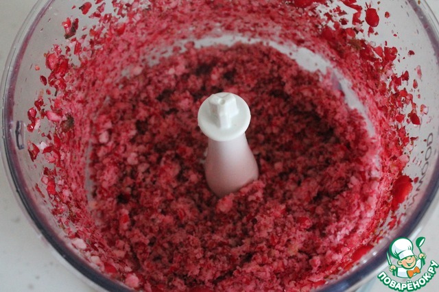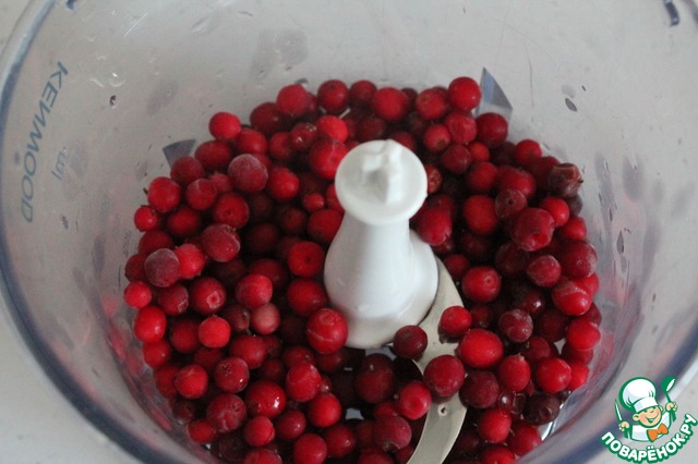 Сверху выкладываем бруснику. Сворачиваем как вам больше нравится. Можно в мешочек, можно в виде рулета. Скрепляем шпажкой или зубочистками.