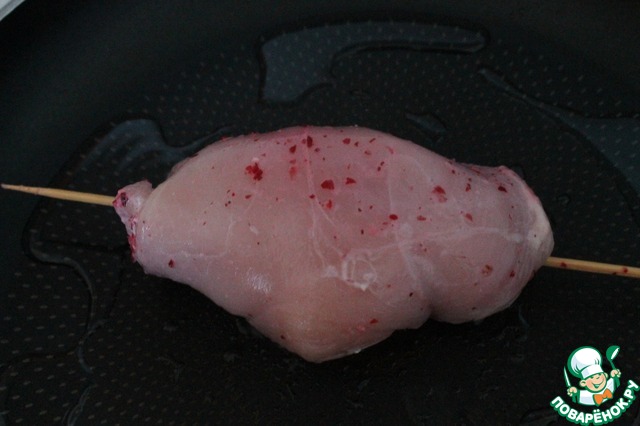 Филе накрываем пищевой пленкой и с внутренней стороны отбиваем.
