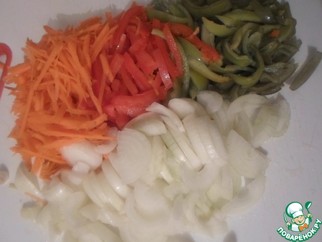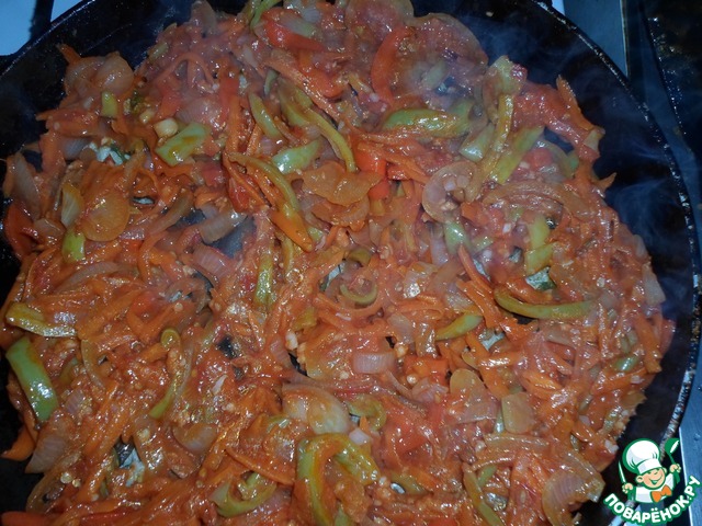На сковороду с небольшим количеством растительного масла выкладываем овощи и пассируем на маленьком огне 5-7 минут.