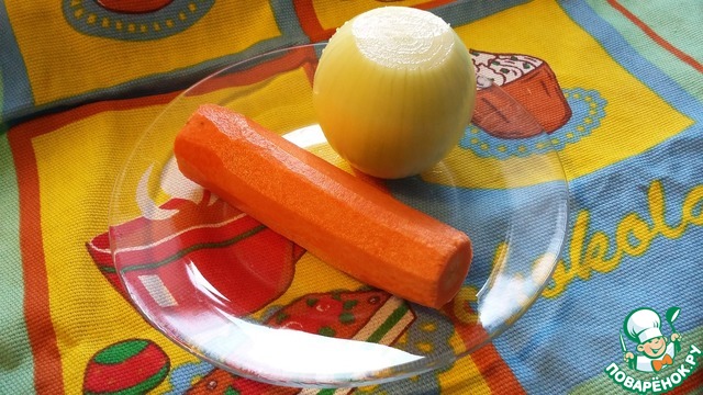 Чистим лук и морковь. У меня они крупные, я люблю, когда овощей побольше.