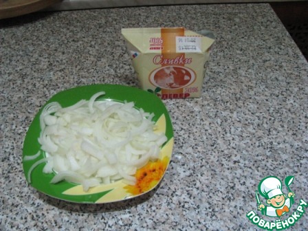 Программу выставляю на режим "Жарка". Тем временем шинкую лук полукольцами.