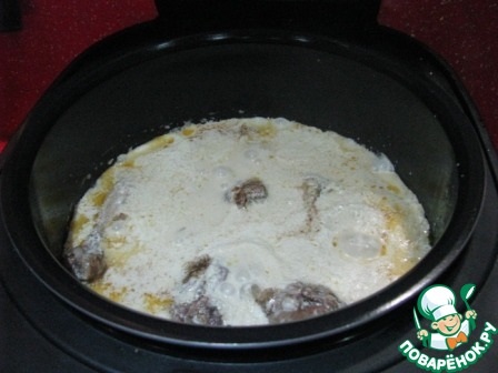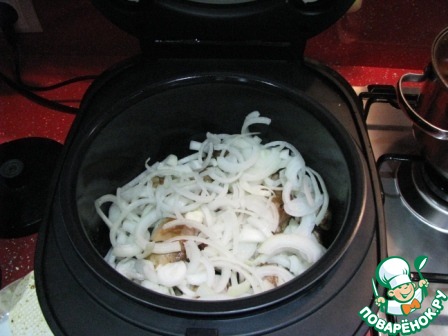 По окончании программы, добавляем к мясу шинкованный лук и выставляем программу "Выпечка". Ели нет такой программы можно выставить "Тушение".