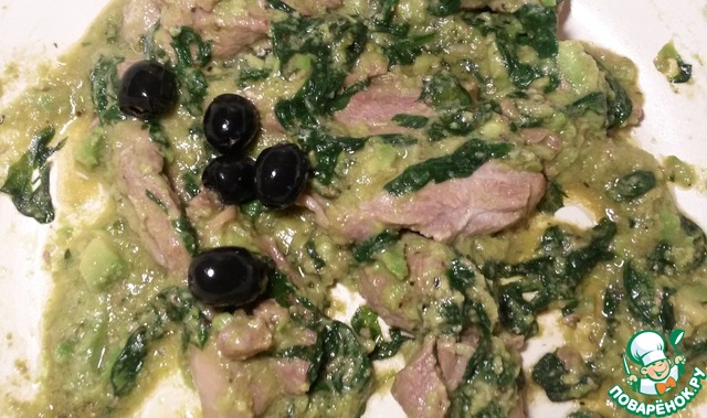 К индейке добавляем шпинат.