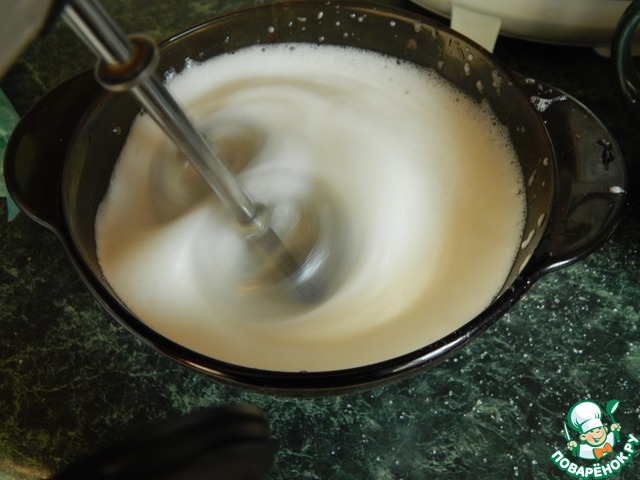 Взбиваем яичные белки с оставшимся сахаром (3ст. л), добавляем к ним 1ст. л уксуса