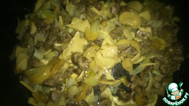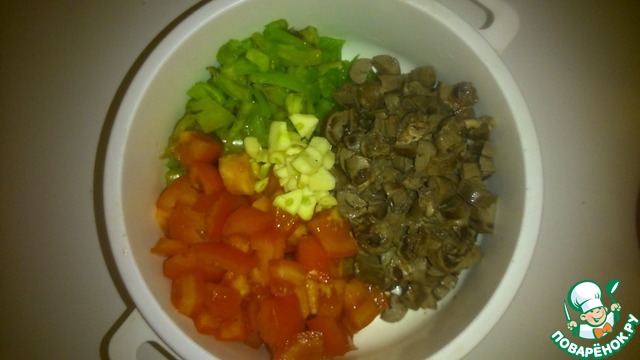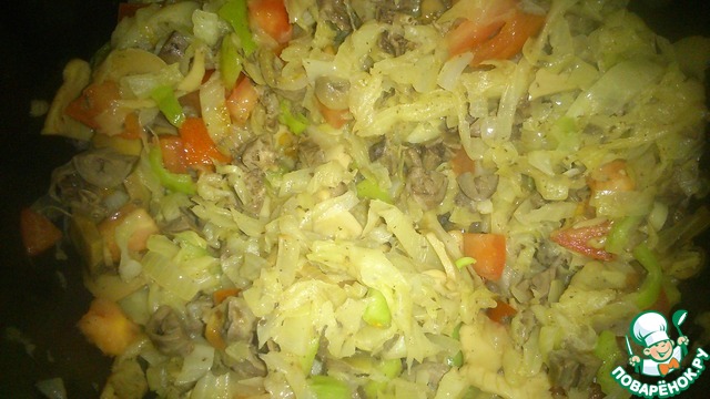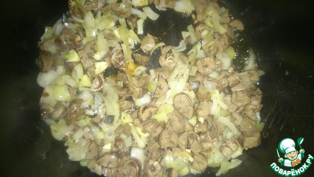 Теперь добавляем к ним сердечки (обжариваем 4 минуты)