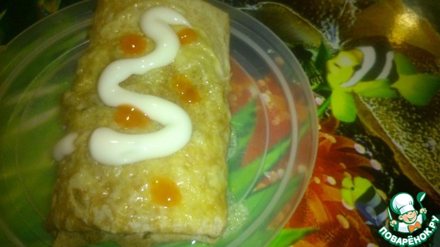 2. посыпаем буритто тертым сыром и отправляем в духовку (смотрим как сыр расплавился)достаем и... рисунок майонезом и соусом Чили (а можно и без майонеза и соуса-кстати, тоже вкусно). приятного аппетита