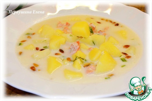 | Нежная и очень ароматная уха со сливочным вкусом и ароматом обжаренных кедровых орехов! |