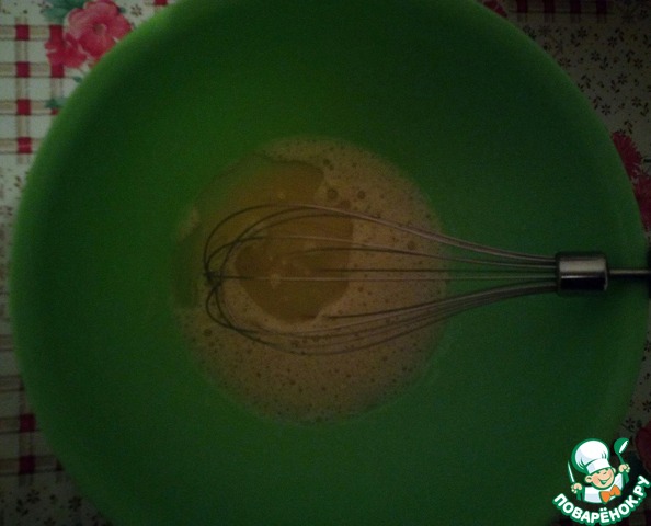 Разбиваем в миску яйца, добавляем сахар и соль, и взбиваем венчиком