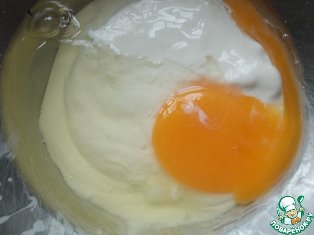Добавьте муку, взбейте тесто до однородности и влейте растительное масло. Если тесто будет густоватое (возможно такое, если яйцо мелкое или сметана густая) до просто добавьте пару ложек воды или молока, или наоборот, подсыпьте муки пол ложечки, если тесто жидковатое.