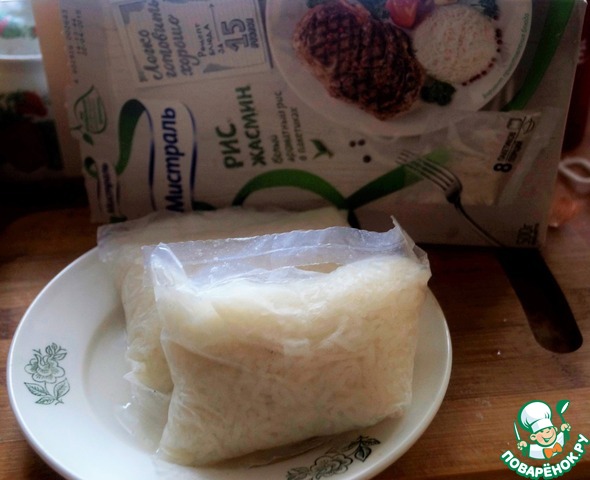Пакетики риса вынуть из воды, дать ей стечь.