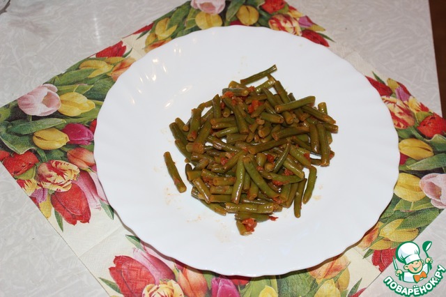 Добавляем фасоль к этому дуэту, накрываем крышкой и тушим 20-25 мин. до готовности.