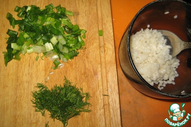 Переходим к начинке: 2 ст. л. промытого риса заливаю 100 мл воды и отправляю в микроволновку 900 Вт на 7,5-8 минут. Пару раз в процессе рис можно проверить, перемешать. Либо можно использовать уже сваренный рис, 2-3 ст. л