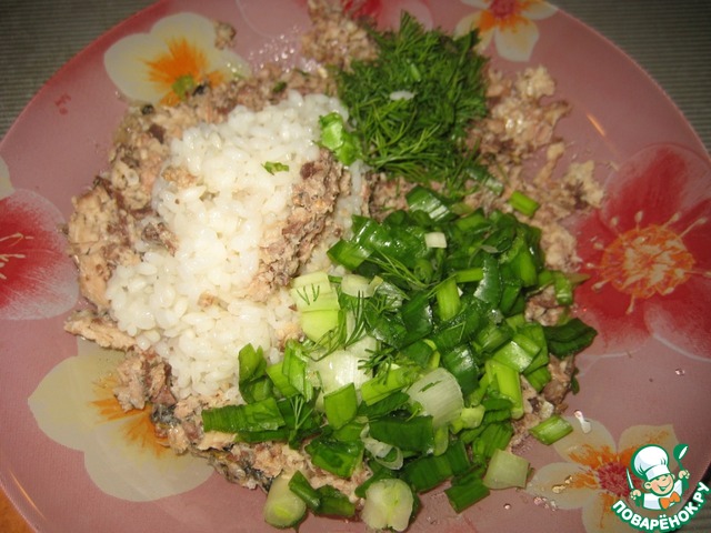 Рецепт "Пирог из быстрого слоеного теста с рыбной начинкой":