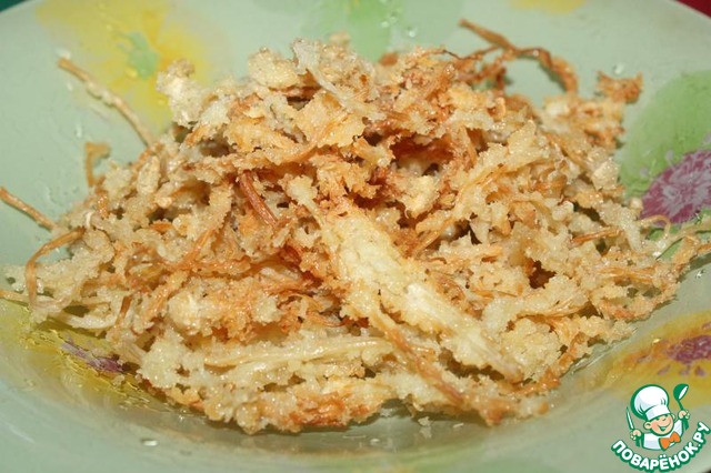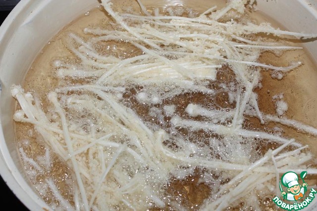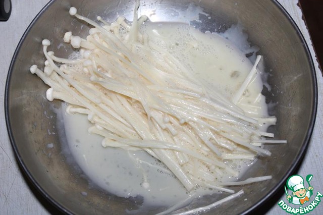 | Еще один очень быстрый рецепт с китайского кулинарного портала. Для этого блюда нам понадобятся зимние опята. В Китае их называют цзиньчженьгу, в Японии энокитаке. В российских торговых сетях импортируемые культивируемые грибы иногда продаются под названием «иноки». |