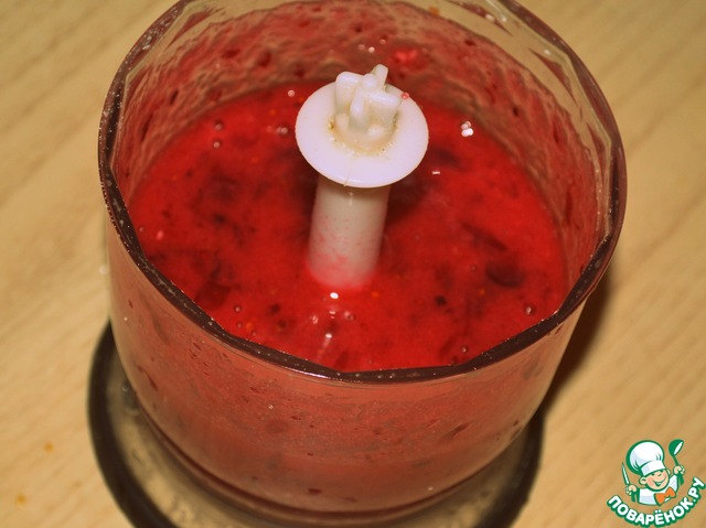 Клюкву вымыть (у меня свежая ягода). И смешать с сахаром. Я пюрировала при помощи блендера.