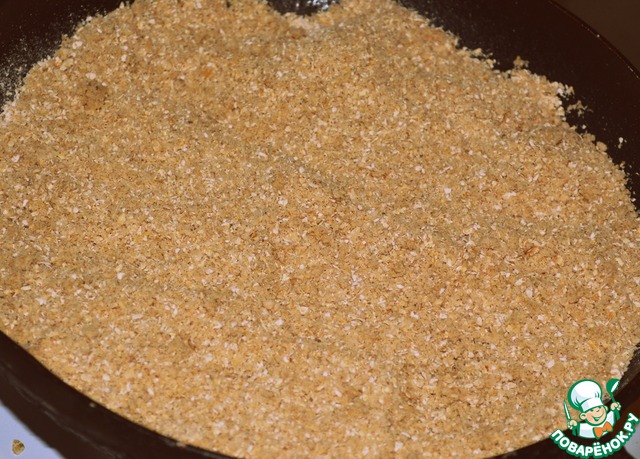 Отправить на сковороду, смазанную подсолнечным маслом, и слегка поджарить, помешивая. Это займёт минуты две, не больше.