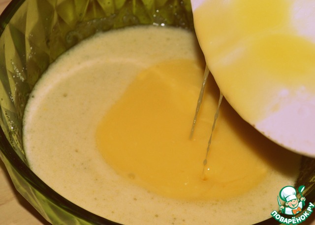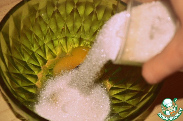 Смешать два яйца со стаканом сахара.
