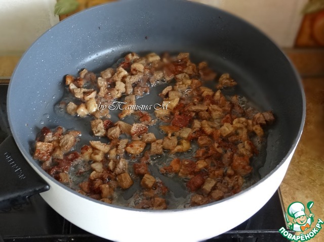 Утиную грудку порезать мелкими кубиками;
