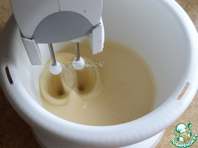 Яйца взбить с сахаром и солью;