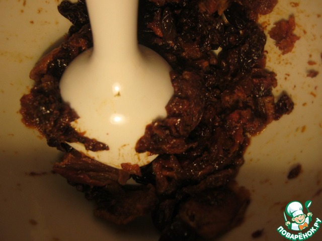 Затем слить воду. Сухофрукты выложить в чашу блендера и измельчить до однородности.