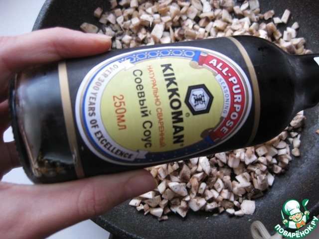 Сливочное масло растопить, добавить нарезанные грибы, соевый соус, перец и тимьян.