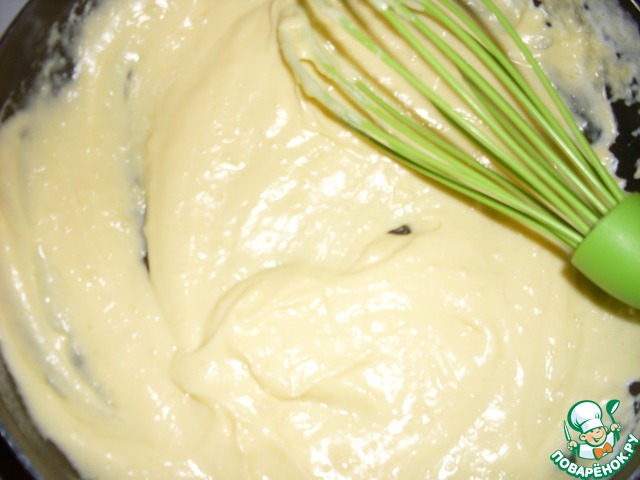 Добавляем сливки и 2 желтка и увариваем до загустения