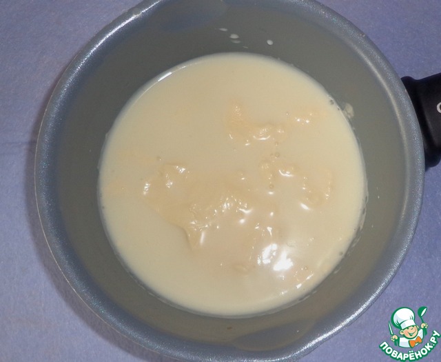 Соединить тертый сыр, молоко и сметану. Проварить до расплавления сыра.