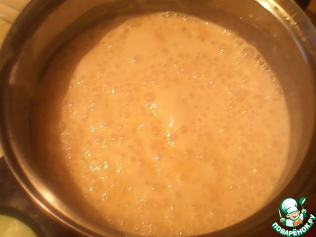 В теплом молоке разводим дрожжи, добавляем пару ложек сахара и муки. Ставим опару.