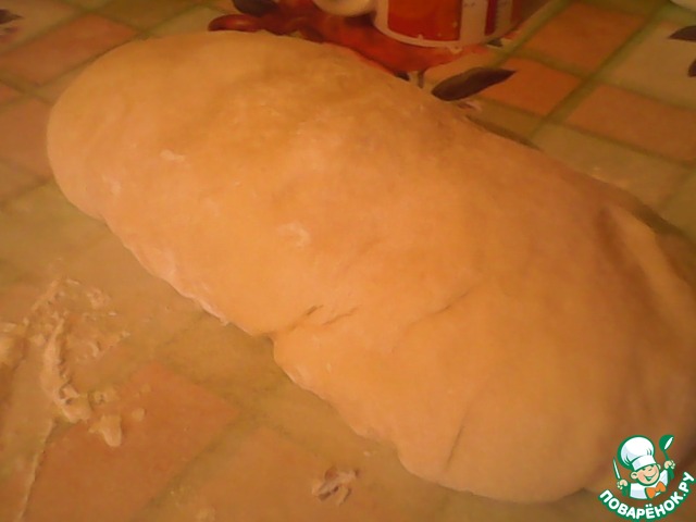 Ровно через час мое тесто поднялось в два раза. Разрезать тесто на половинки.