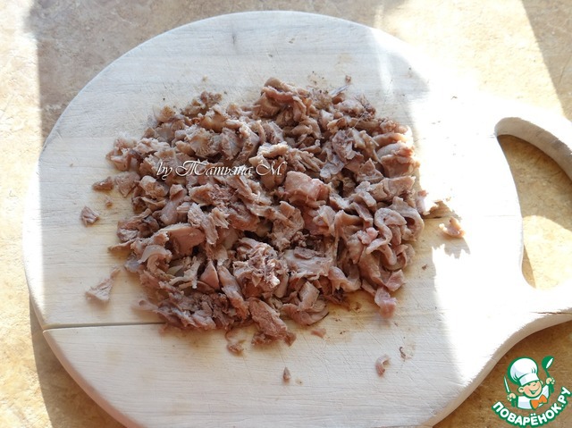 Мясо утки мелко порезать;