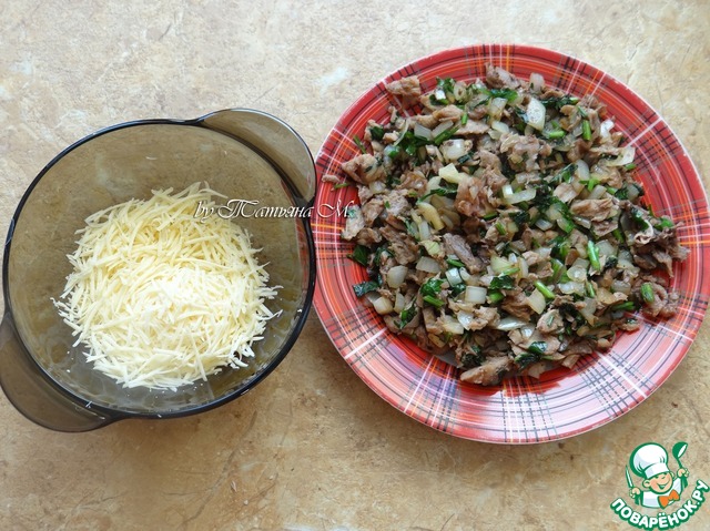 Начинку остудить, сыр натереть на терке;