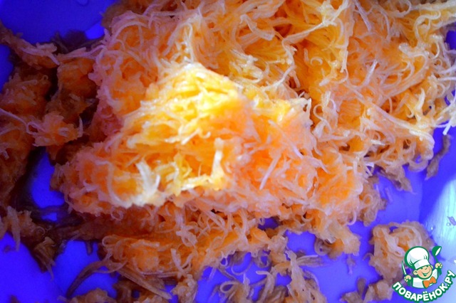Смешиваем с тыквой муку и соль - получается очень эластичное и приятное тесто.