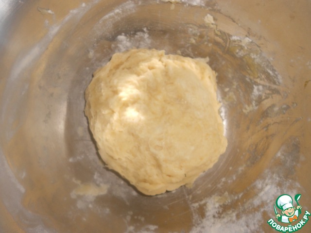 Когда масло растает, добавить растительное масло, соль, прлсеянную муку и замесить тесто.
