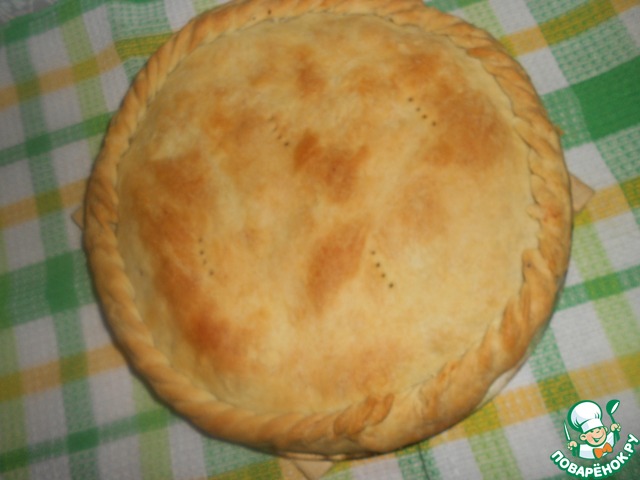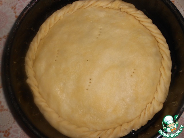 Закрыть пирог вторым пластом, края пирога защипнуть.