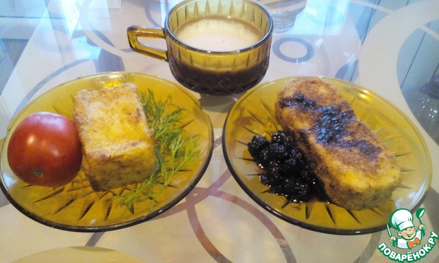 Подаем закусочный вариант с зеленью и помидором, десертный - с вареньем