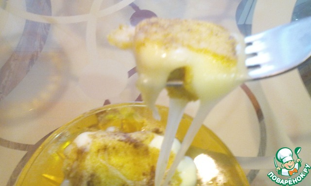 Есть такое блюдо нужно сразу, пока сыр не застыл. Можно, конечно, разогреть в микро перед подачей, но если вы ещё не разрезали сыр, иначе вытечет!