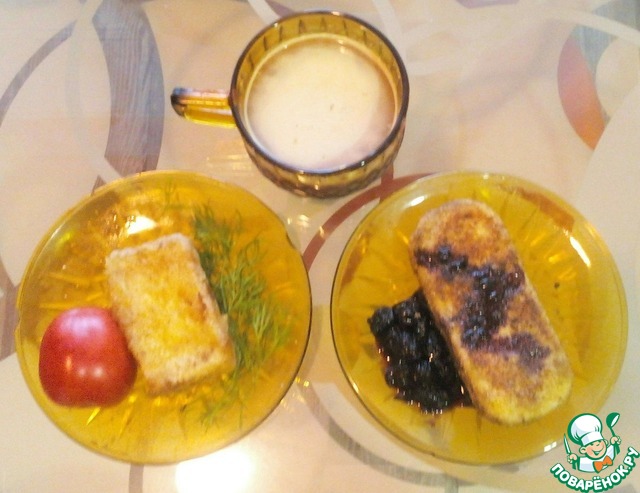 | Жареный камамбер во Франции - классика жанра! Его традиционно подают с джемом. Как бы много похожих рецептов не было на сайте, я предлагаю вам свой вариант приготовления и подачи... Причём два! - закусочный и сладкий. Но поскольку я не нашла Камамбер, то заменила его на другие мягкие сыры - нейтральный Кавказский Умалат и соленоватый сливочный Natura. Получились нежные плавленные сыры в хрустящей тонкой корочке... Ммм! Единственный нюанс: жареный сыр - очень сытное блюдо. Удивляюсь, как французы подают его на десерт. Так что не готовьте много в первый раз. Две порции - потому что делала из двух кусочков сыра, но на мой взгляд, этого хватит на 4 порции! |
