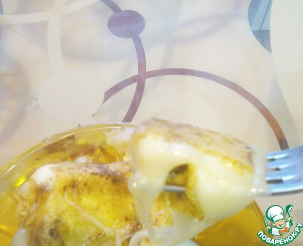 То же проделываем со вторым кусочком сыра, а лучше оба готовить вместе и пожарить одновременно (если вы оба варианта сразу подаёте)