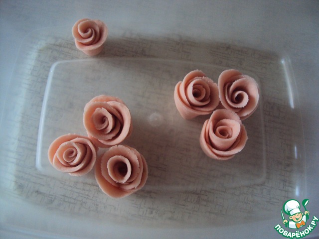 У меня осталось 125 г смеси после замешивания мастики. она нам понадобится для раскатки мастики перед изготовлением украшений. А вот то на что у меня хватило фантазии.