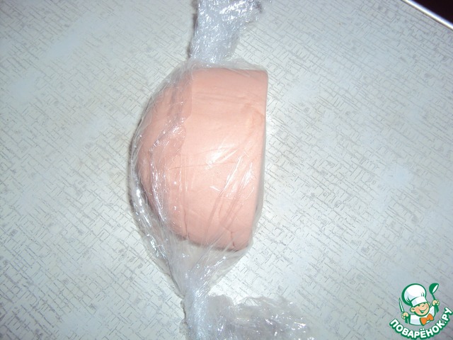На водяной бане растопить маршмеллоу вместе с лимонным соком и сливочным маслом (все время помешиваем). Как только масса стала однородной, снимаем с огня и замешиваем ложкой в той же таре. Начинаем засыпать по чайной ложке смесь (сахарную пудру 200 г смешать с картофельным крахмалом 100 г) и вымешиваем настолько насколько это возможно, а далее выкладываем на стол посыпанный смесью и замешиваем тесто пока не перестанет прилипать к рукам. Теперь упаковываем мастику в полиэтилен и на 30 мин в холодильник. на фото половина получившейся мастики (т. к. позно решила сделать фотографии)