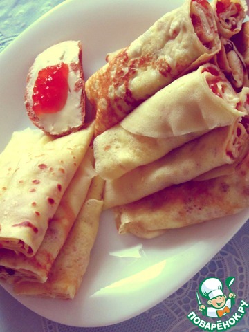 | Я очень люблю творожный сыр, да нет... обожаю! Обожаю сочетание сыра с икрой. И вот сегодня обнаружив в холодильнике и то и другое, мне захотелось соединить все и завернуть в мои любимые блинчики! |
