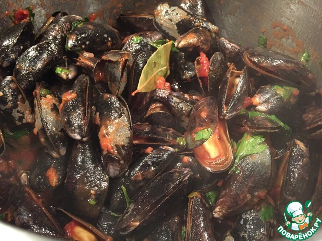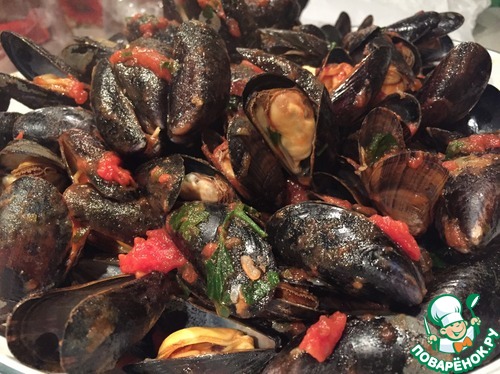 | Предлагаю вам, дорогие Поварята, вот такой рецепт. Простой. Невероятно ароматный и очень вкусный. Самое главное-свежайшие мидии!!! Ели с мужем в центре Милана буквально несколько дней назад и решила приготовить дома. Чем с вами и делюсь! прекрасная закуска, обед или ужин. С бокалом белого вина... Ммм. Очень нежно и изыскано! |