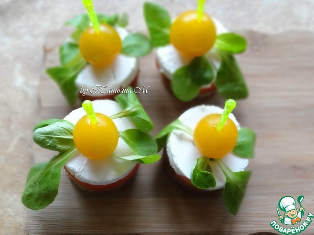 Поместить канапе на блюдо, присыпать морской солью и тимьяном!