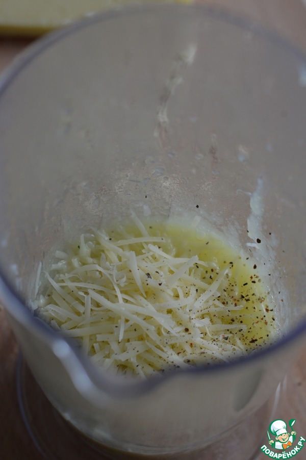 3. Кабачок переложить в чашу блендера, добавить перец и лимонный сок и пробить в пюре. Затем добавить пармезан и перемешать.