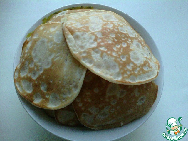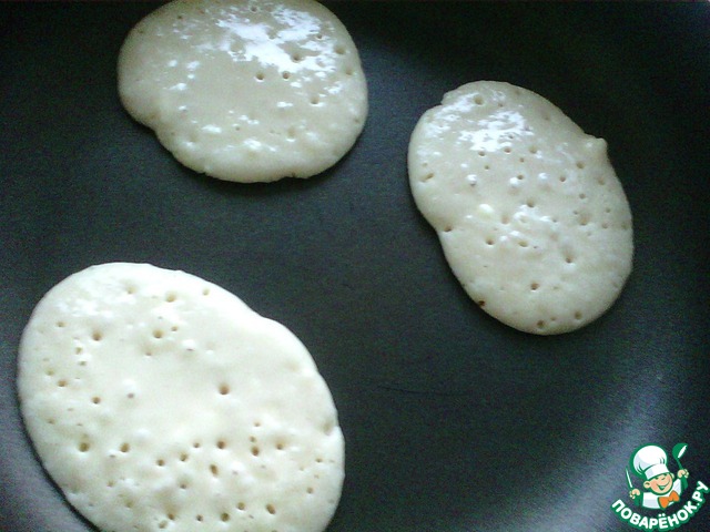 Я выпекаю на антипригарной сковородке без масла, как только появляются пузыри переворачиваем на другую сторону