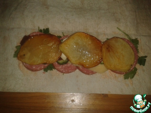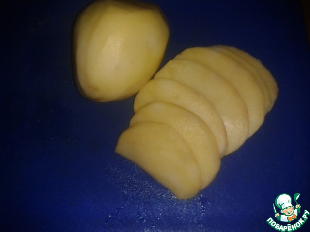 Ну и самое что не обычное в этом гамбургере картошка. достаточно 3-4 кружочка в зависимости от размера.
