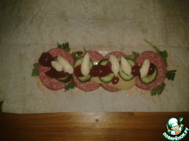 Полейте совсем чуть, чуть кетчупом и майонезом.