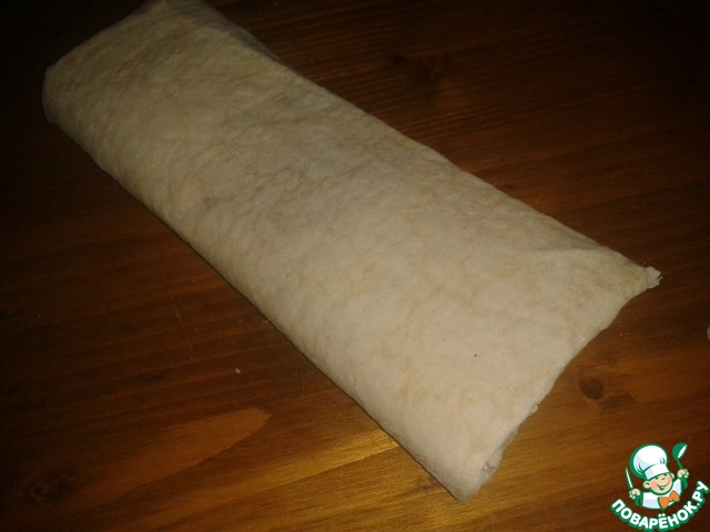 Аккуратно сворачиваем и видим всеми нами любимую шаурму только тонкую.