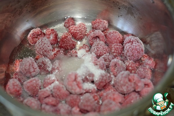 2. Малину выложить в ковш, влить воду, всыпать сахар, поставить на средний огонь.