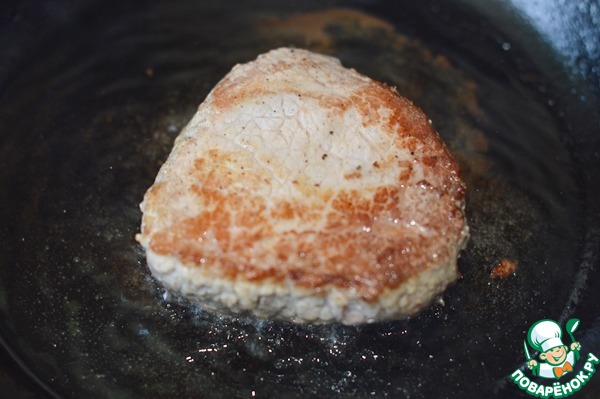 7. В сковороде разогреть масло, обжаривать мясо с двух сторон до золотистой корочки, затем довести до нужной прожарки в духовке. Я использую термометр для мяса.